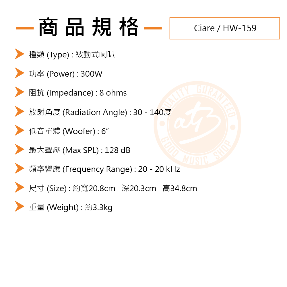 ◆ 義大利品牌,具6吋低音單體,300W功放