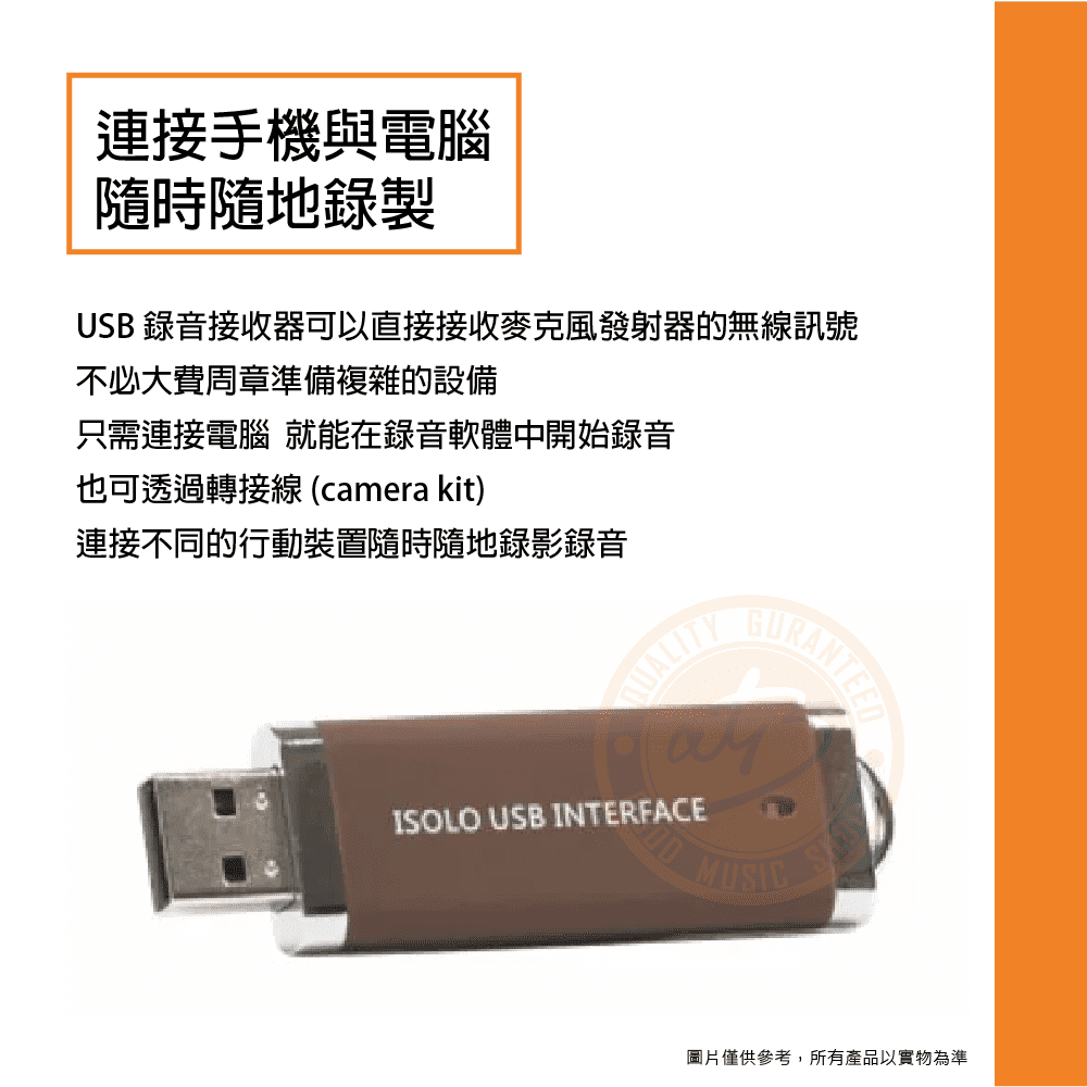 ◆ USB 錄音接收器可以直接接收麥克風發射器的無線訊號