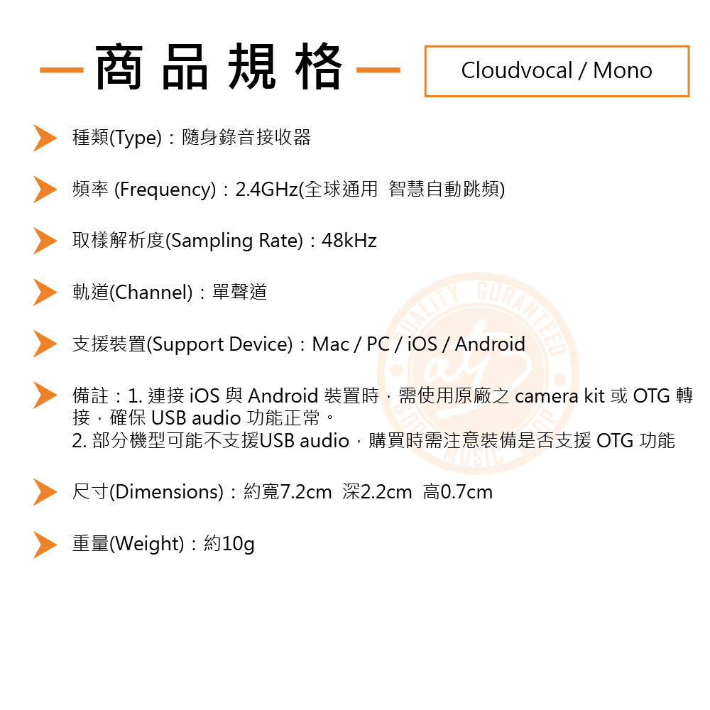 ◆ 單聲道48kHz無壓縮取樣音源,支援Mac / PC / iOS / Android