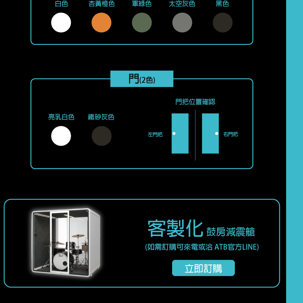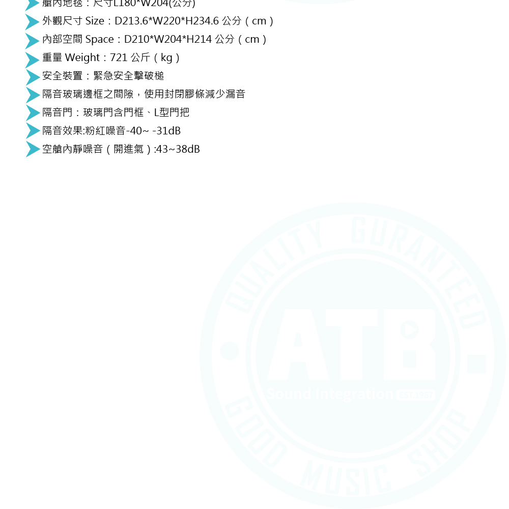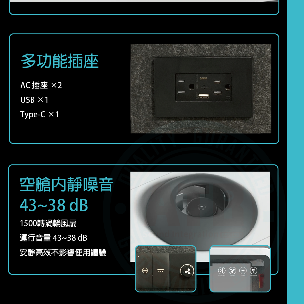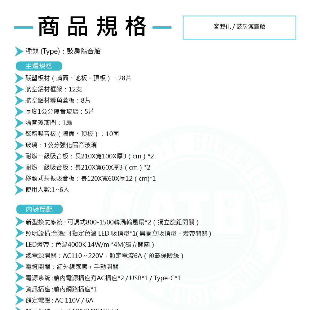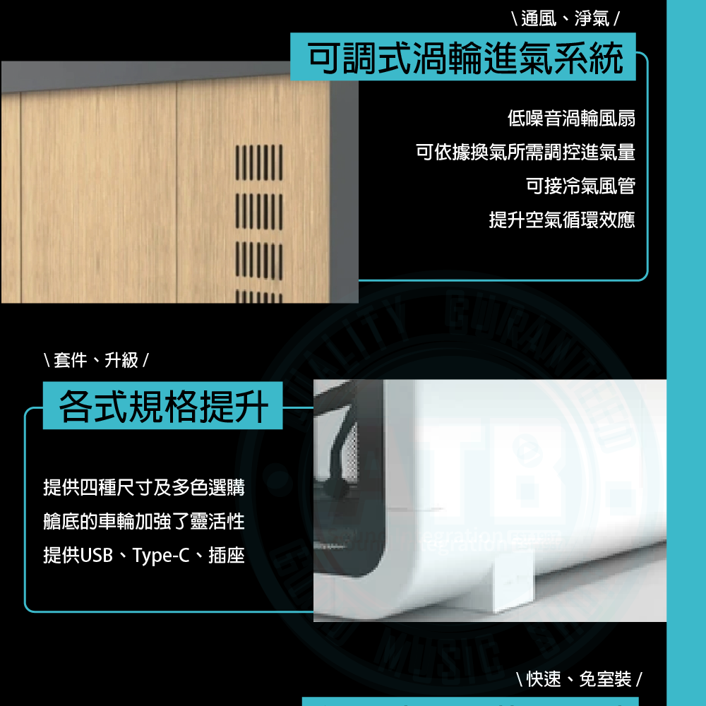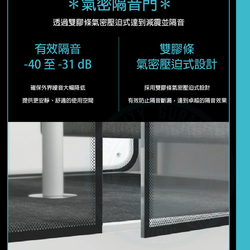 ◆ 客製化鼓房減震艙,隔音值-25~-20dB