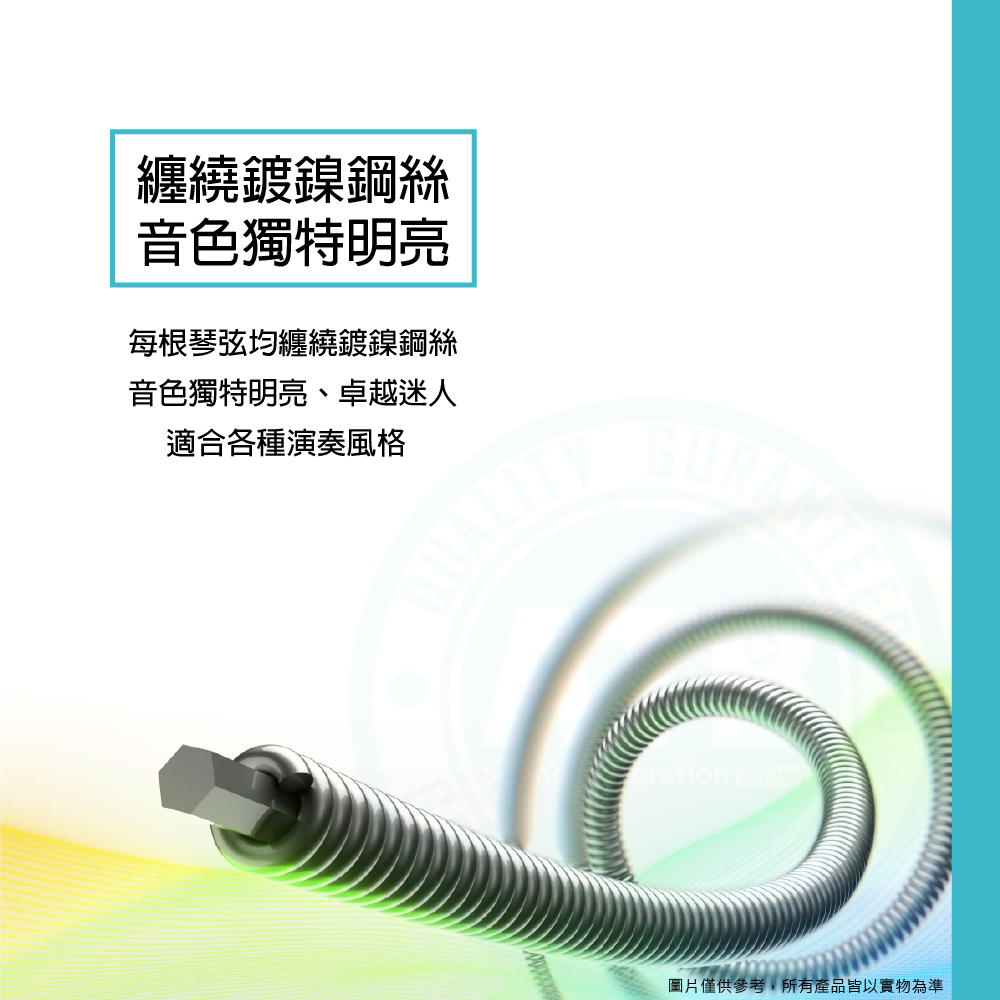 ◆纏繞鍍鎳鋼絲,音色獨特明亮,基音清晰