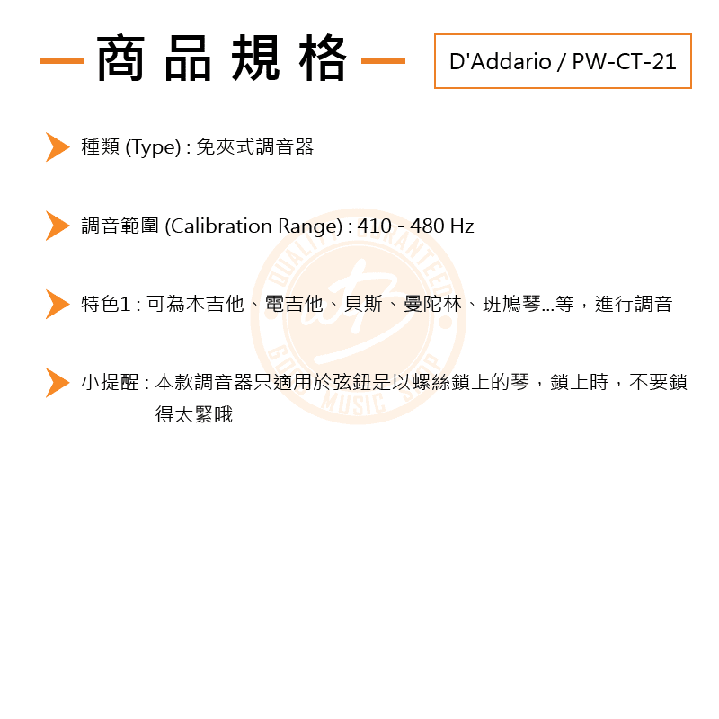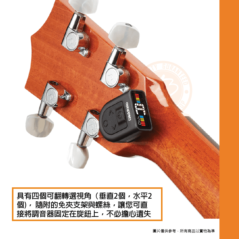 ◆ 隨附的免夾支架與螺絲可直接將調音器固定在旋鈕上