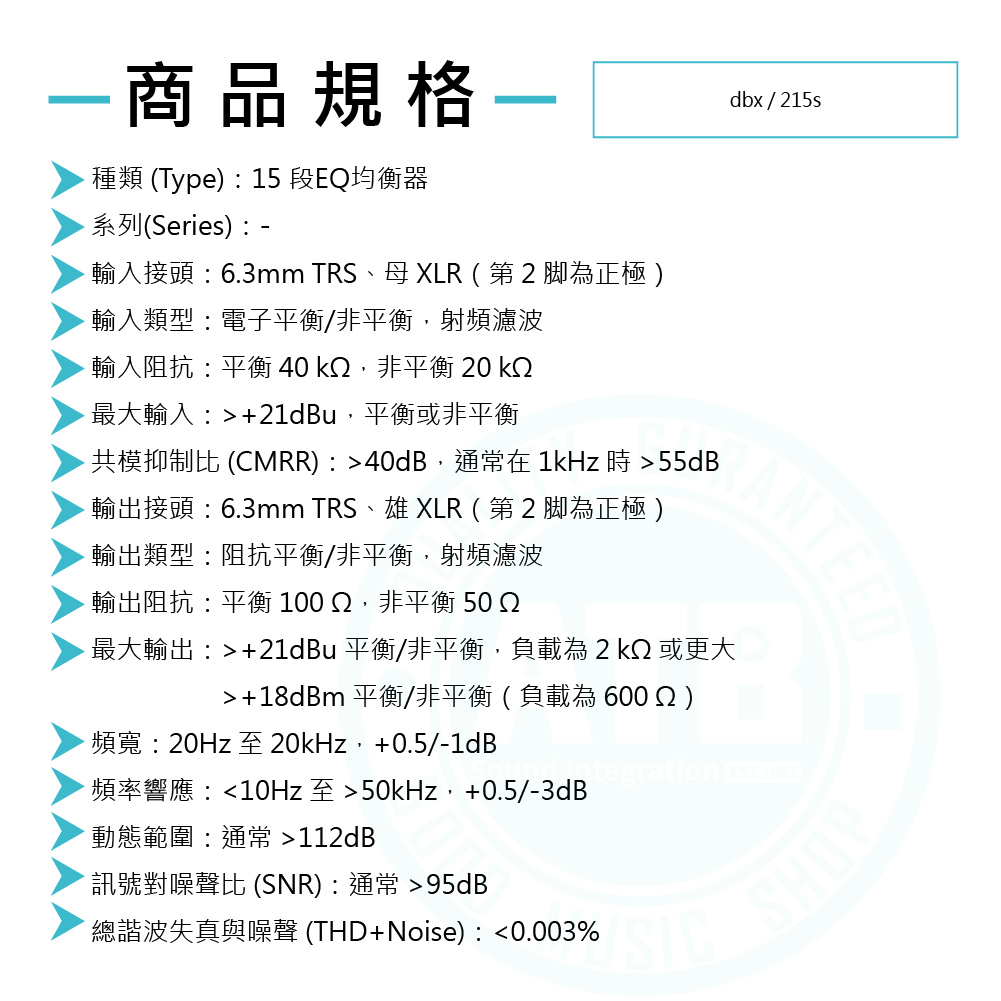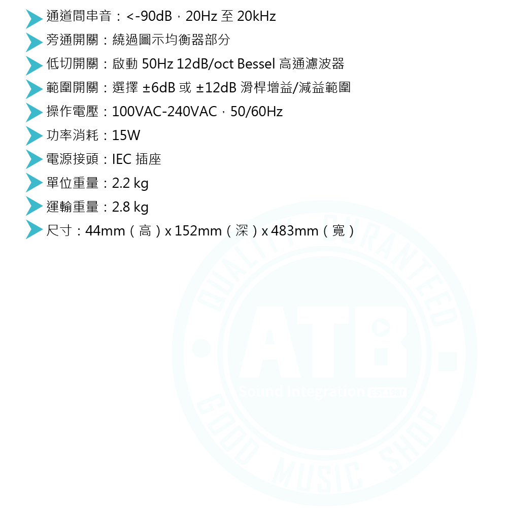 ◆ 可切換 ±6dB 或 ±12dB 增益範圍