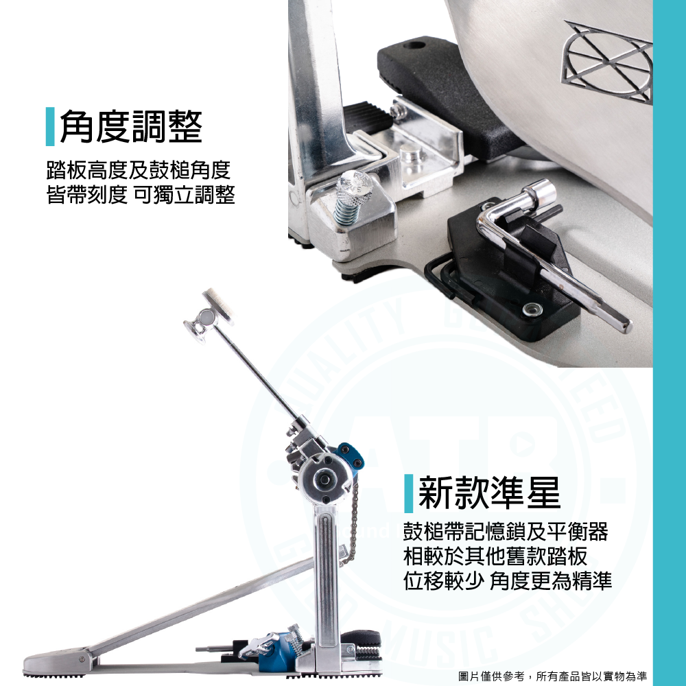 ◆帶刻度 可獨立調整踏板高度及鼓槌角度