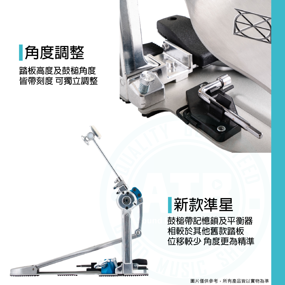◆帶刻度 可獨立調整踏板高度及鼓槌角度