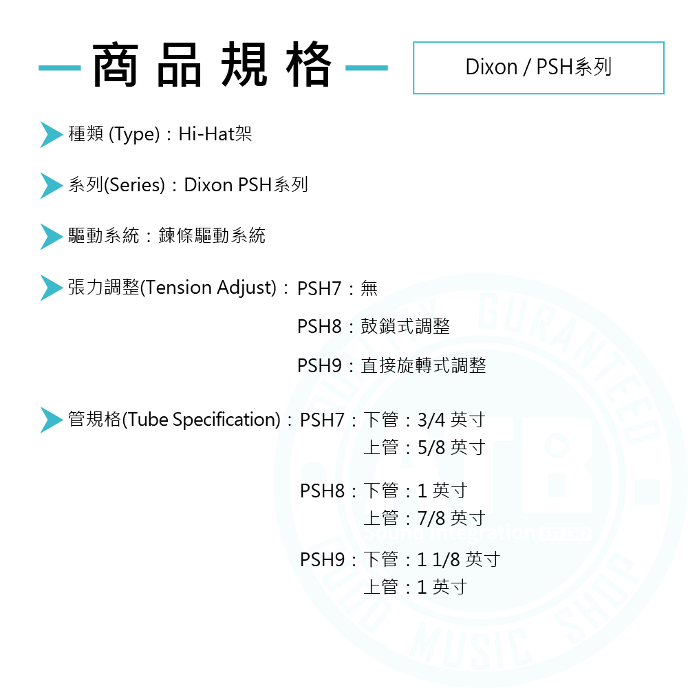 Dixon / PSH系列 Hi-Hat架 (PSH7 / PSH8 / PSH9)