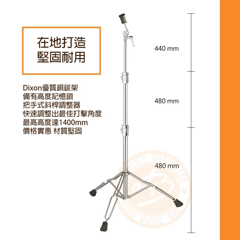 ◆在地品牌Dixon打造的優質銅鈸細斜架