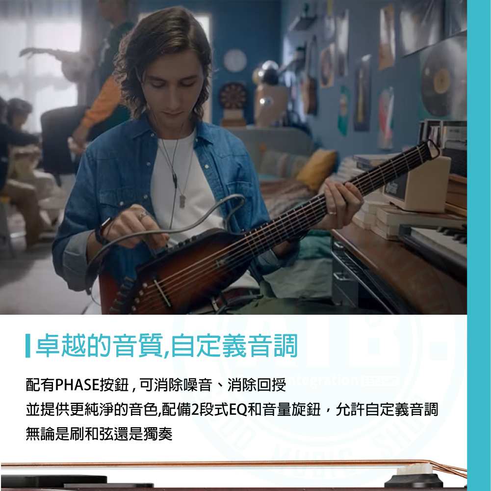 ◆配PHASE按鈕 , 可消除噪音、消除回授2段式EQ和音量旋鈕,允許自定義音調