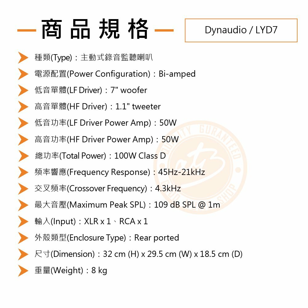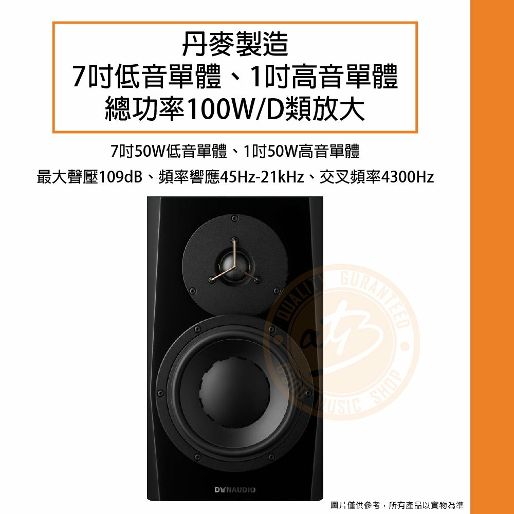 ◆ 丹麥製造,搭載7吋低音單體、1吋高音單體,總功率100W