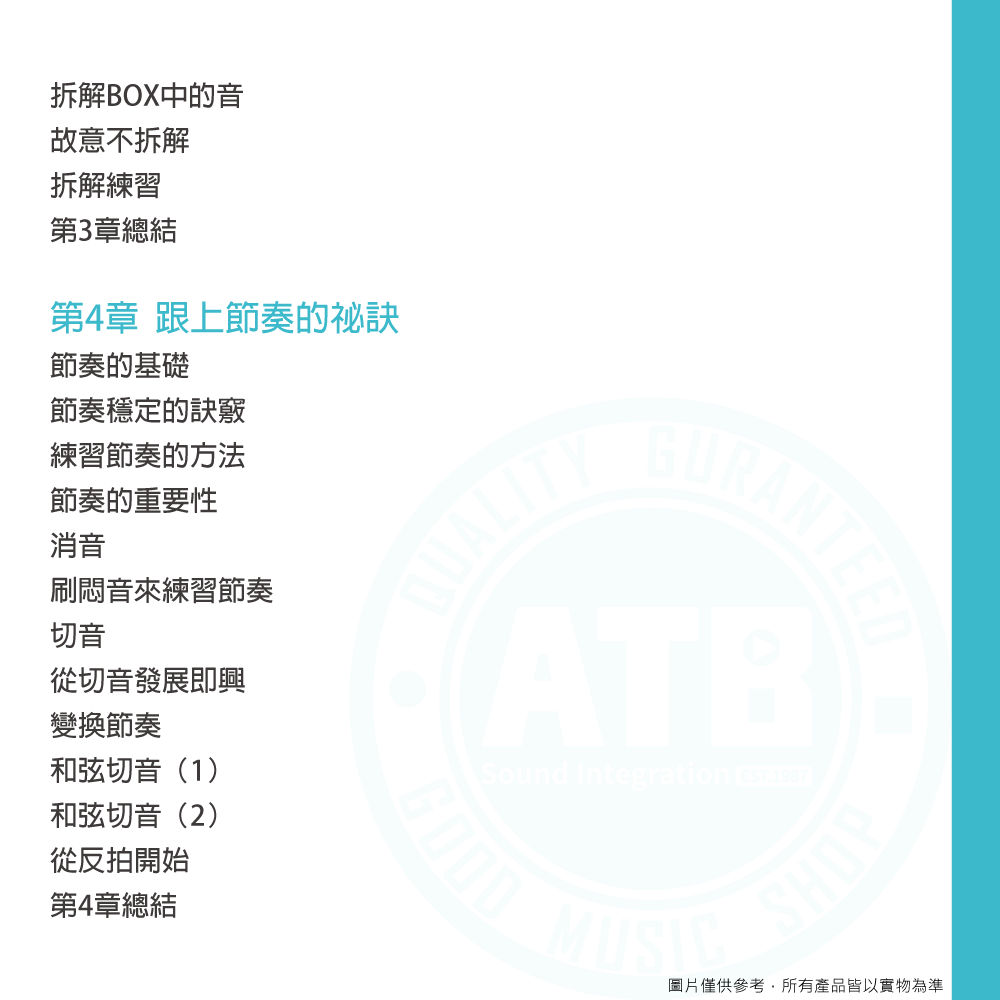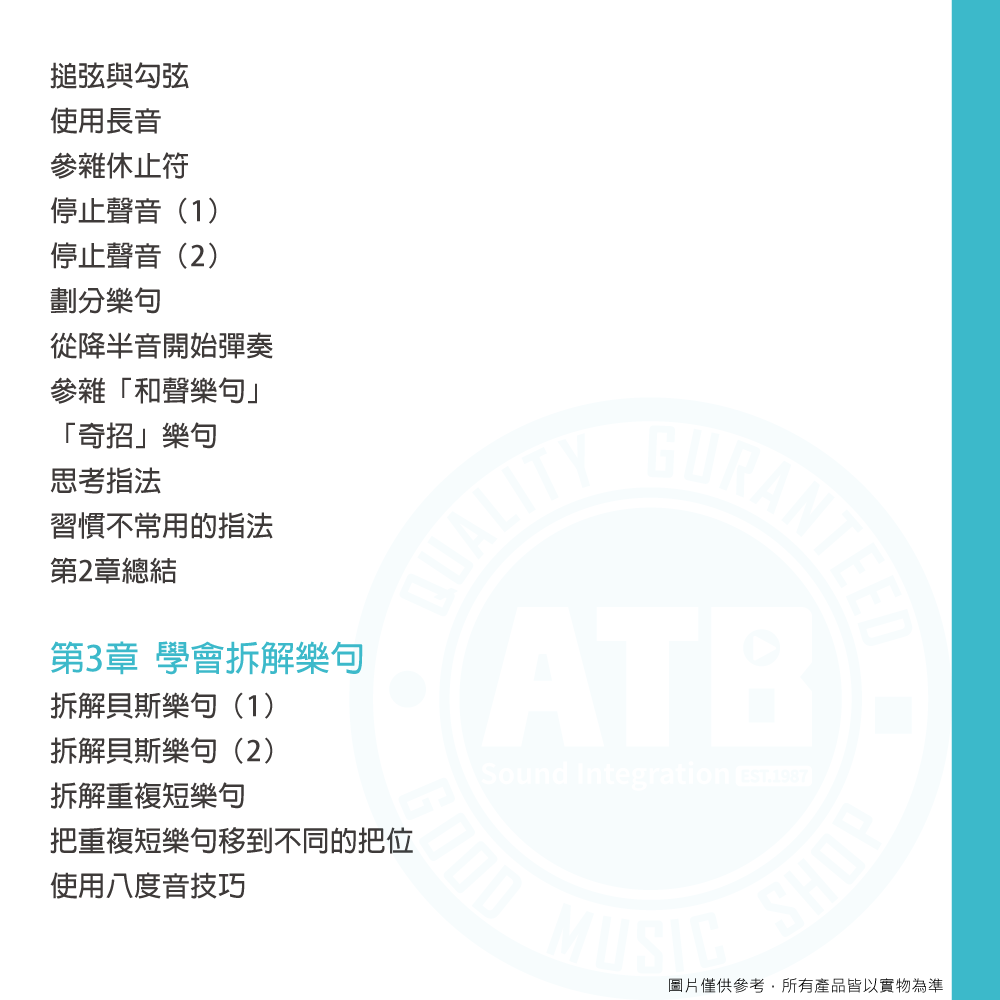 ◆即興好用13種技巧:拉長音、彈奏休止符、搥弦、下行、上行、勾弦、顫音、改變八度、推弦、拆解、滑音、模仿貝斯樂句、改變拍子