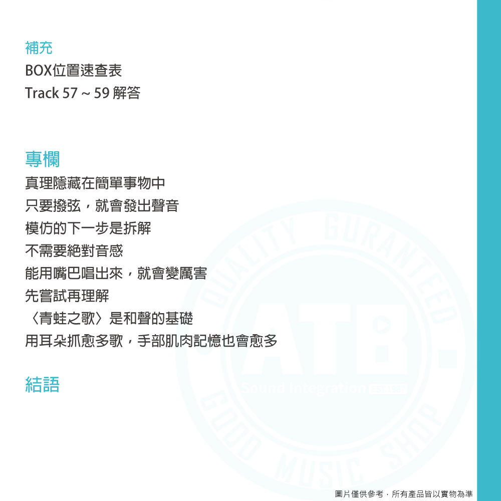 ◆專屬音樂示範音檔+譜例+指板位置速查工具,練習的好幫手