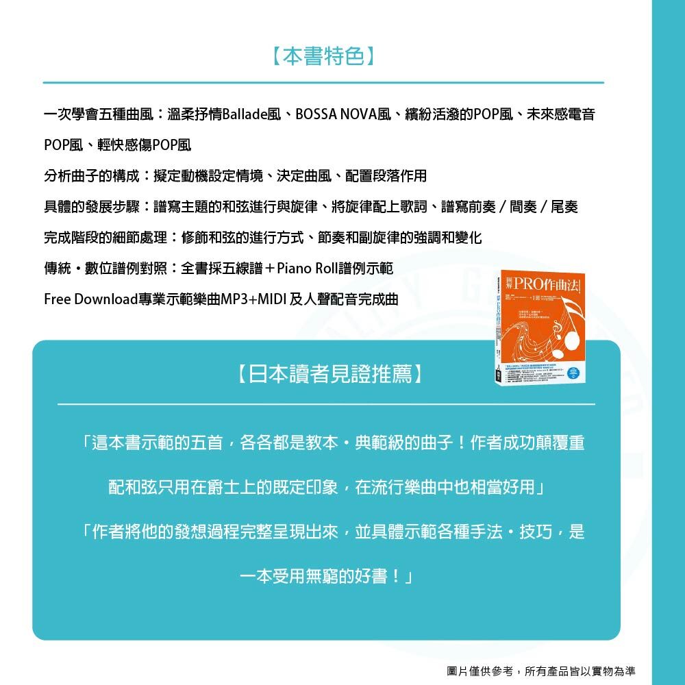 ◆五種曲風一次學會:抒情、波薩、流行、電音、輕傷