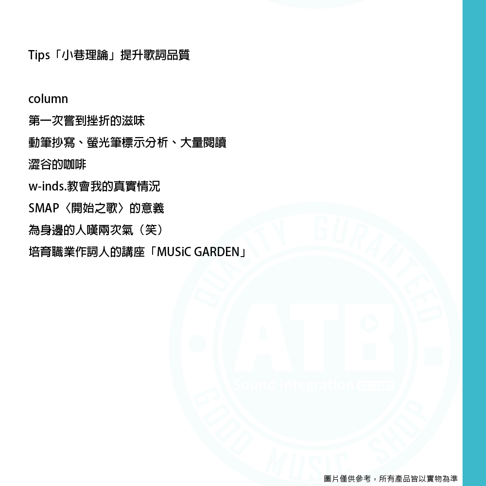 ◆ 賣座歌曲歌詞創作法,金賞音樂人Step by Step傳授
