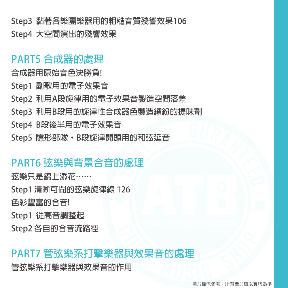 ◆詳細解說各部樂器、人聲&和聲、合音、效果音、合成器等處理順序及做法