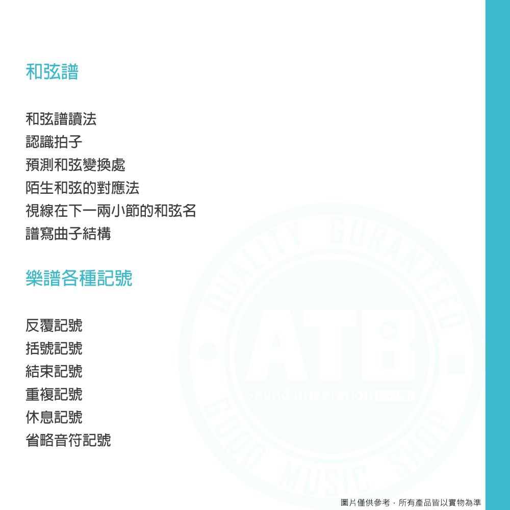 ◆一次學會和弦譜、節奏譜、TAB譜(吉他和貝斯)、五線譜