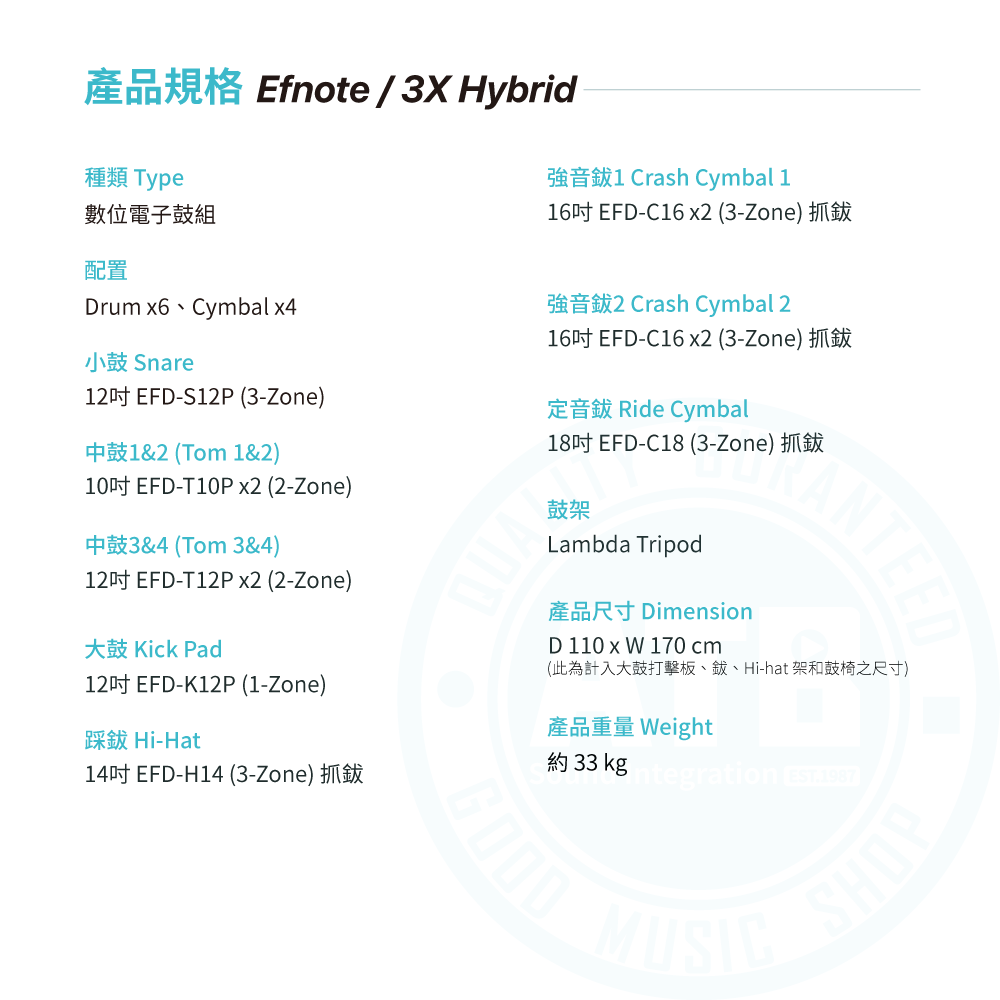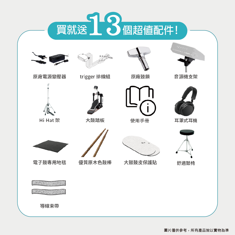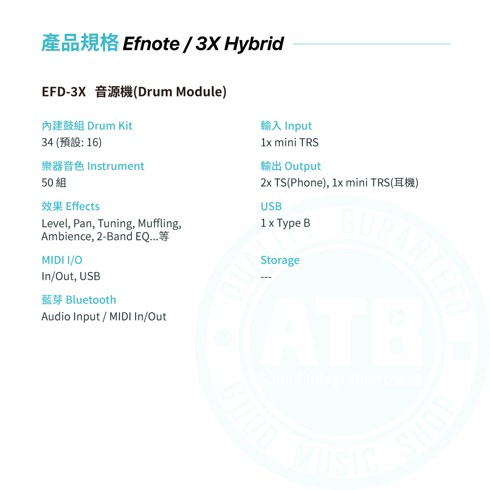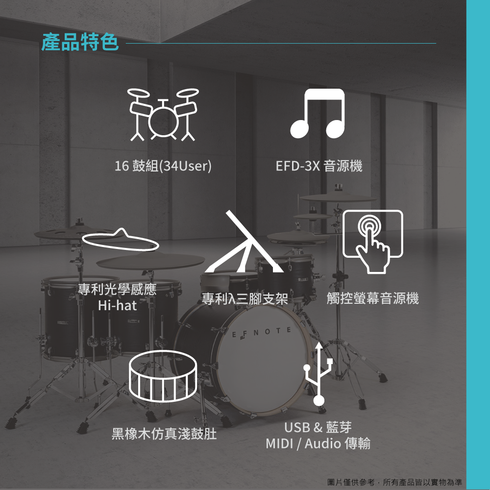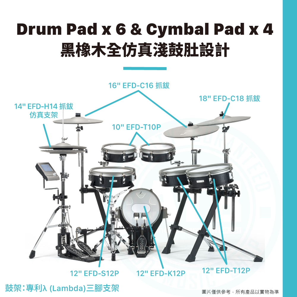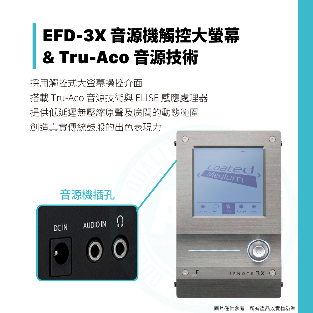 ◆ EFD-3X觸控式音源機,具16鼓組(34User)、111樂器音色