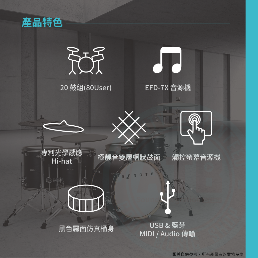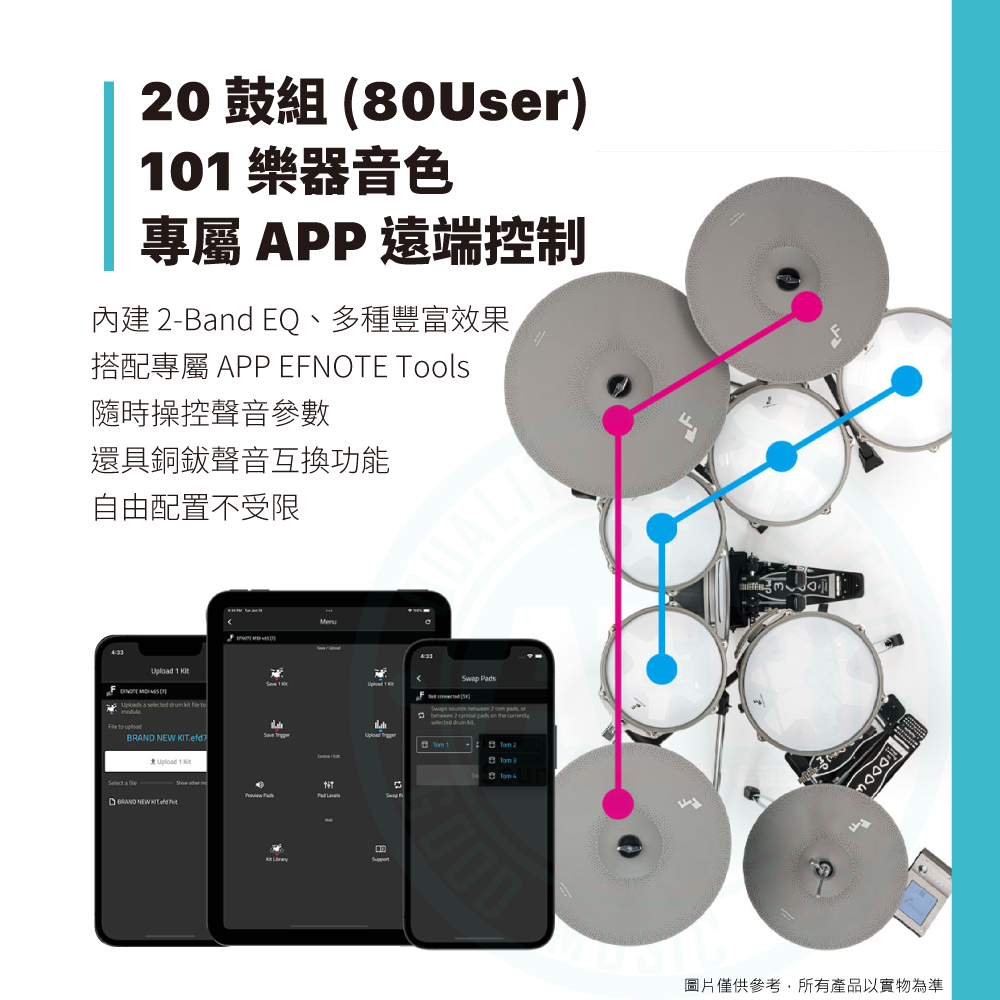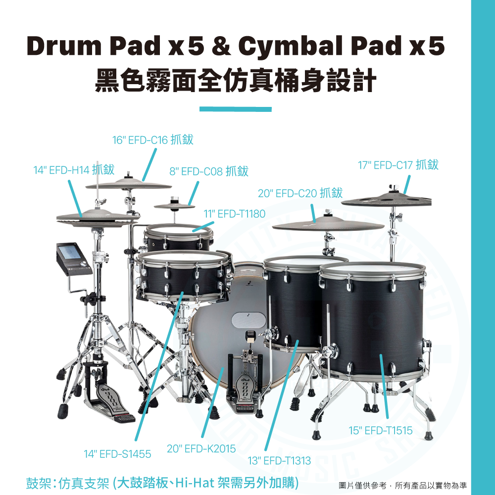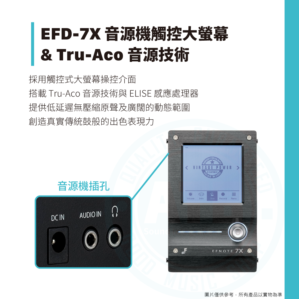◆ EFD-7X觸控式音源機,具20鼓組(80User)、101樂器音色