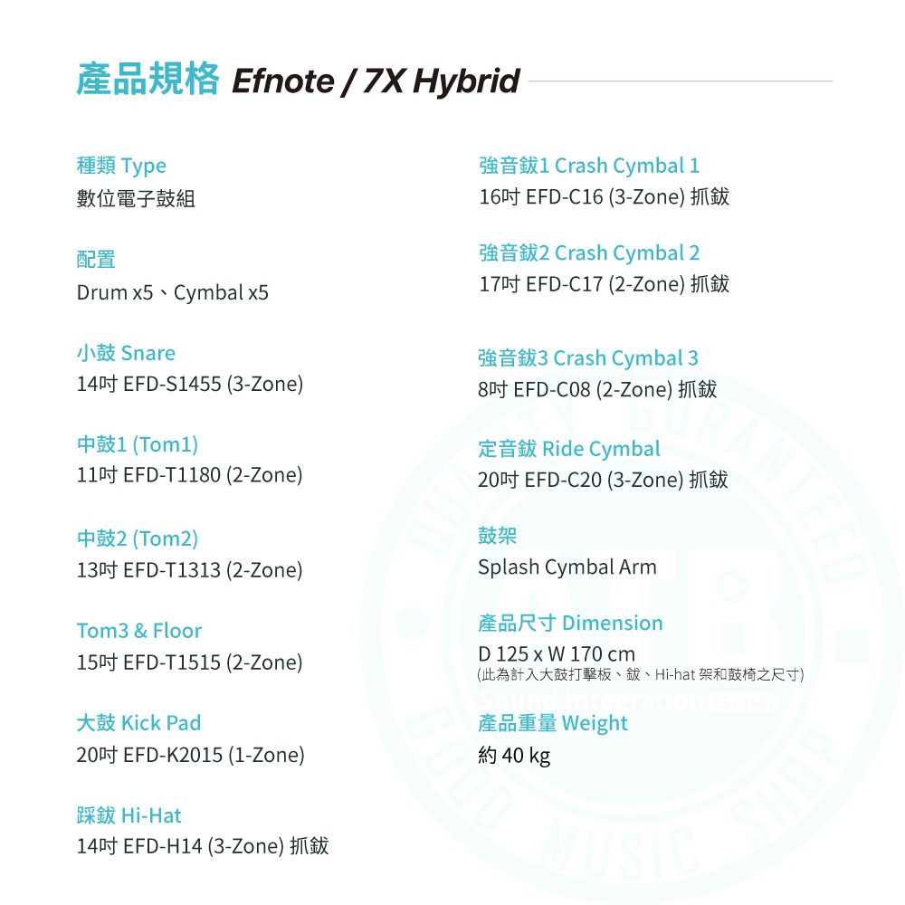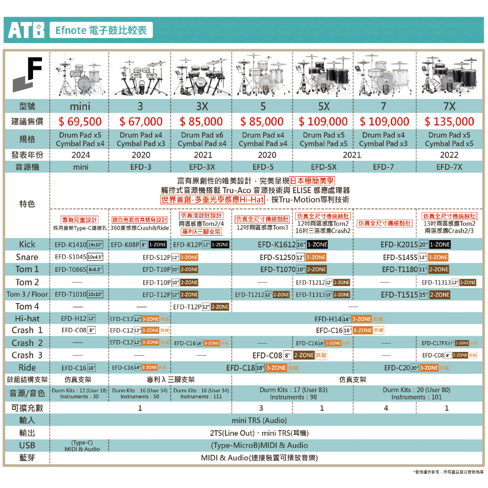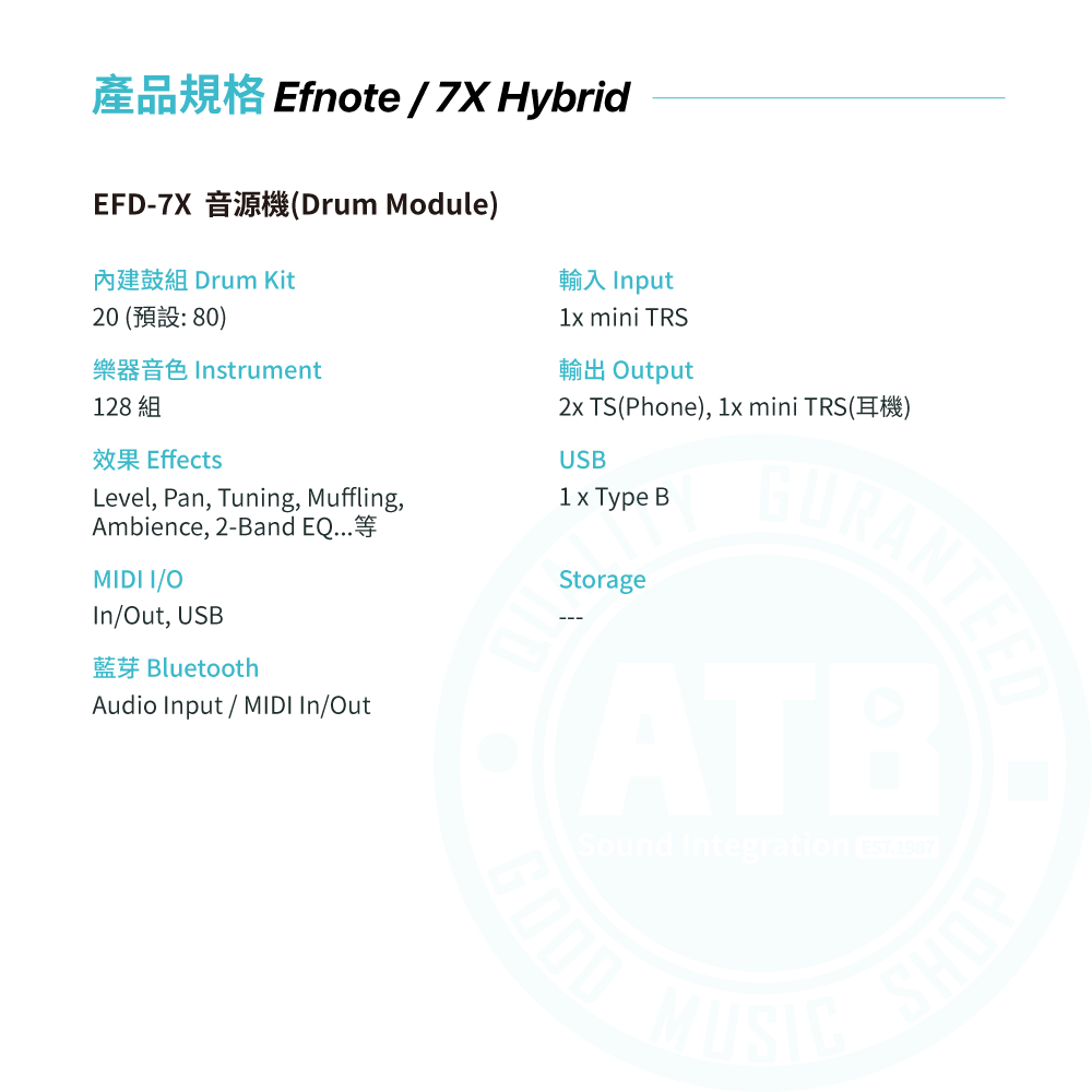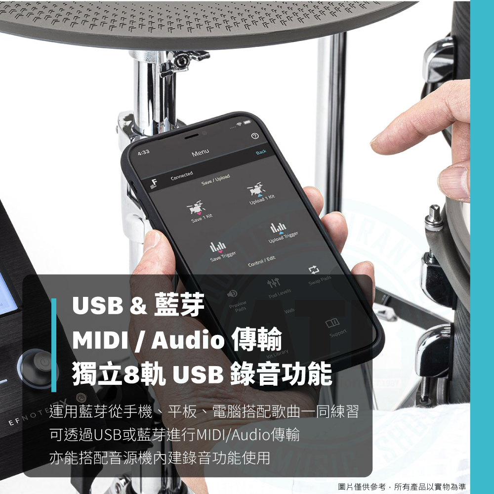 ◆ EFD-7X觸控式音源機,具20鼓組(80User)、101樂器音色