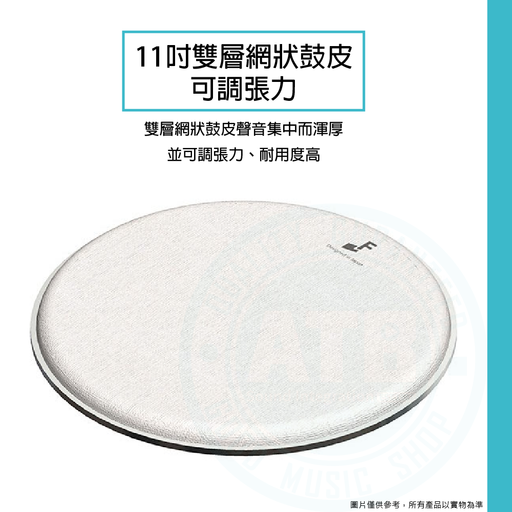 ◆ 11吋雙層網狀鼓皮,聲音集中而渾厚