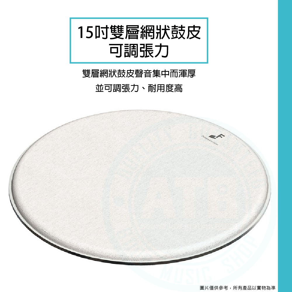 ◆ 15吋雙層網狀鼓皮,聲音集中而渾厚