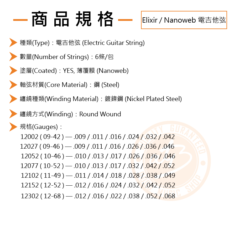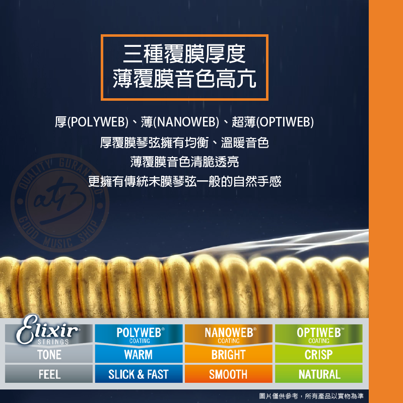 ◆採用Elixir生物覆膜專利技術,完整細緻包覆,使琴弦維持更久的彈性與張力