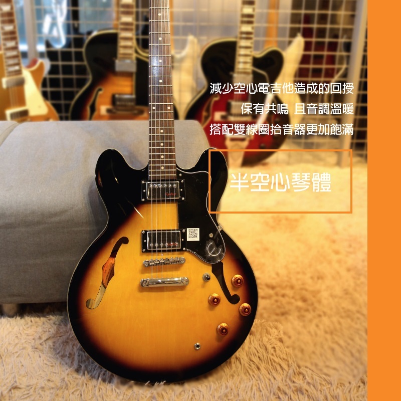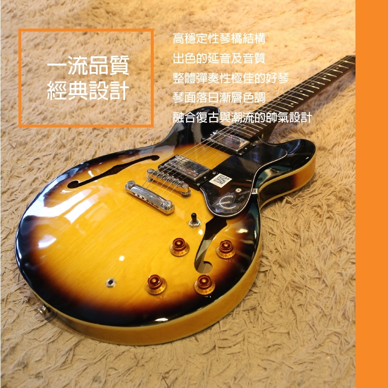 ◆半空心電吉他,有效防止回授產生,保持一定程度的原音聲響