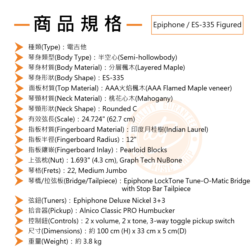 ◆ 重現經典Gibson ES-335半空心電吉他