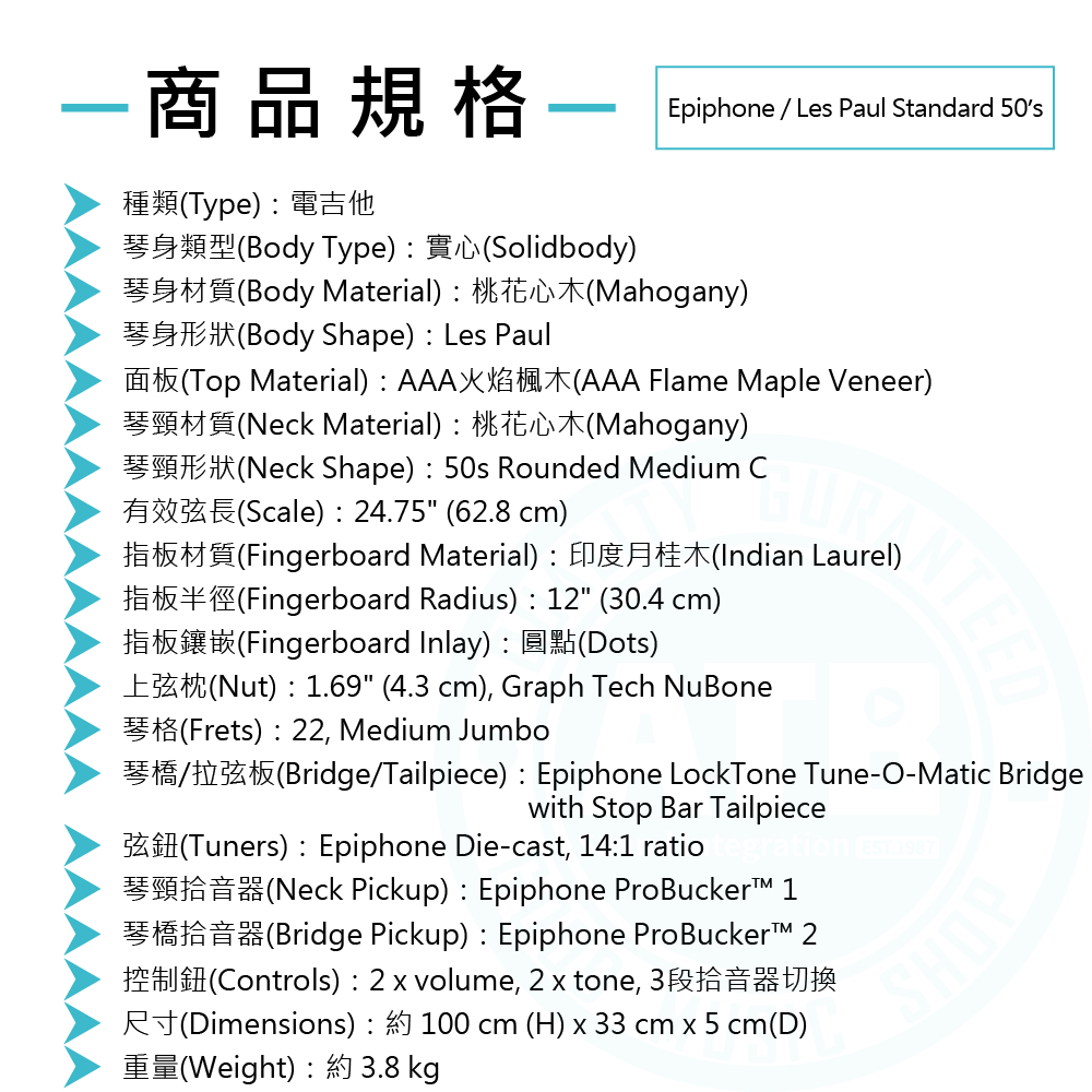 ◆ 擁有50年代C型琴頸,手感平坦舒適