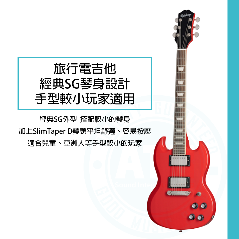 ◆ 旅行電吉他,經典SG琴身設計,手型較小玩家適用