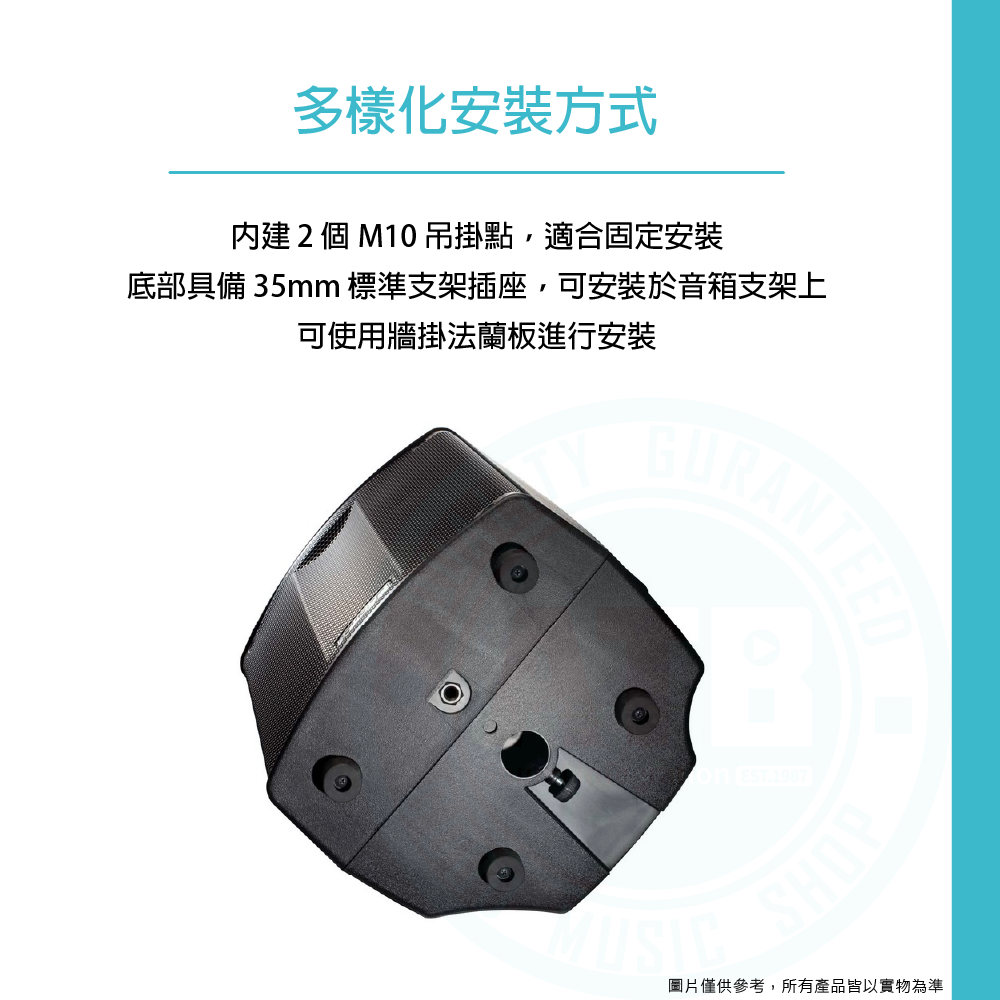 ◆內建 35mm 支架插座與 M10 吊掛點,可靈活安裝於腳架或吊掛系統
