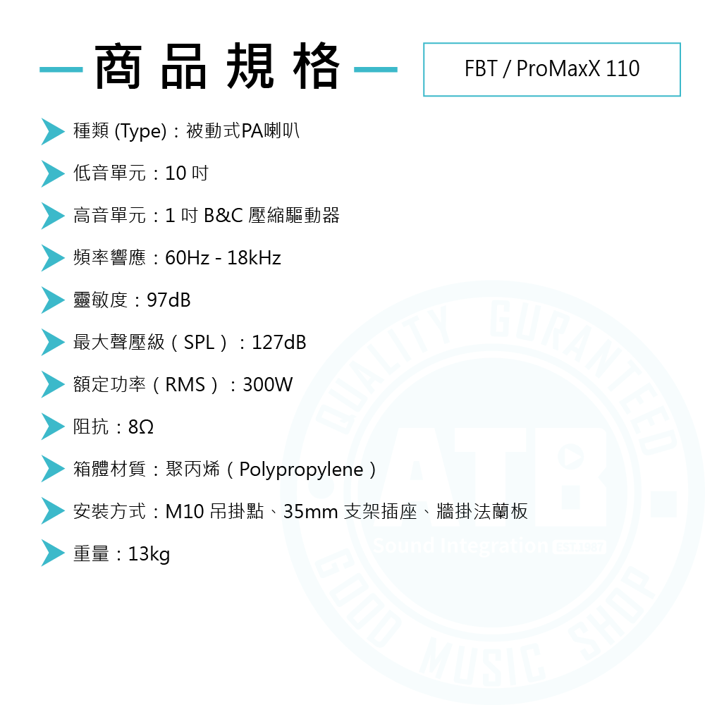 ◆FBT ProMaxX 110 是一款 10 吋被動式PA喇叭,專為高功率現場擴聲和巡演設計