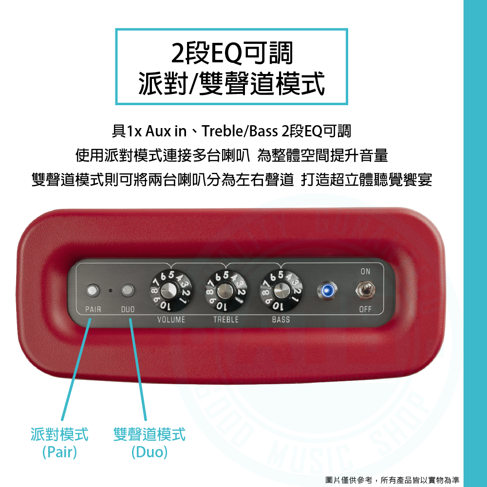 ◆ 具2段EQ可調、派對/雙聲道模式
