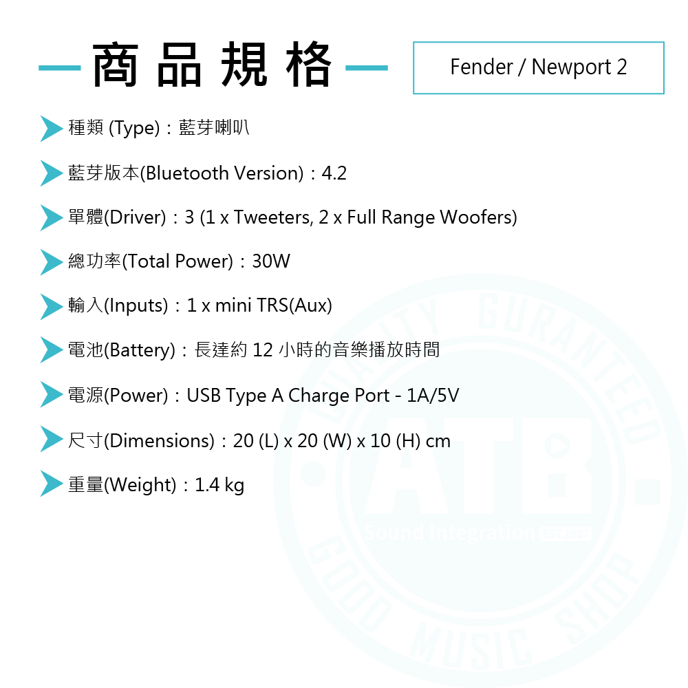 ◆ Fender復刻經典設計,30W充電式藍芽喇叭