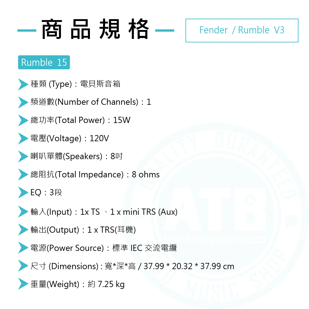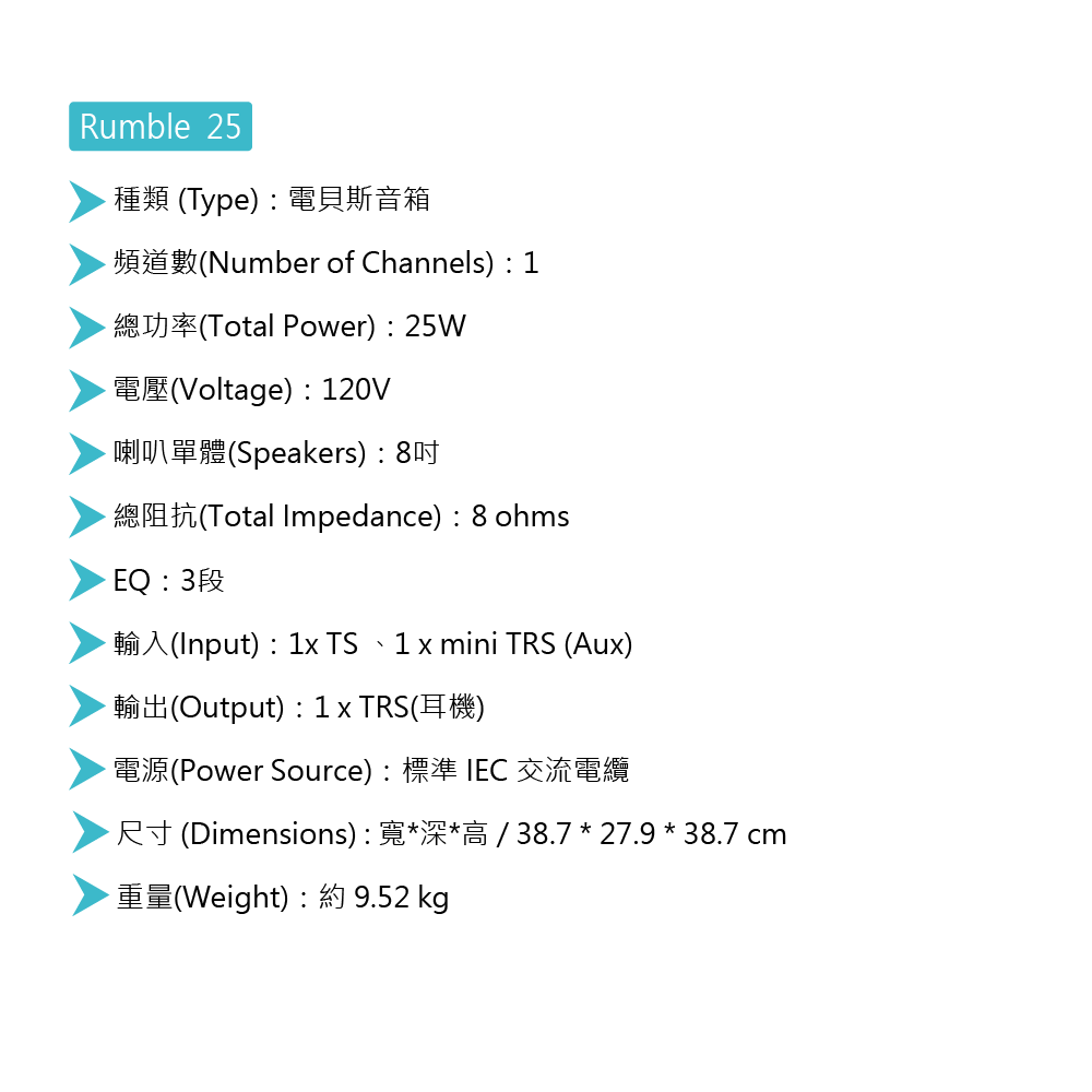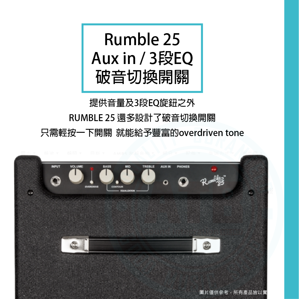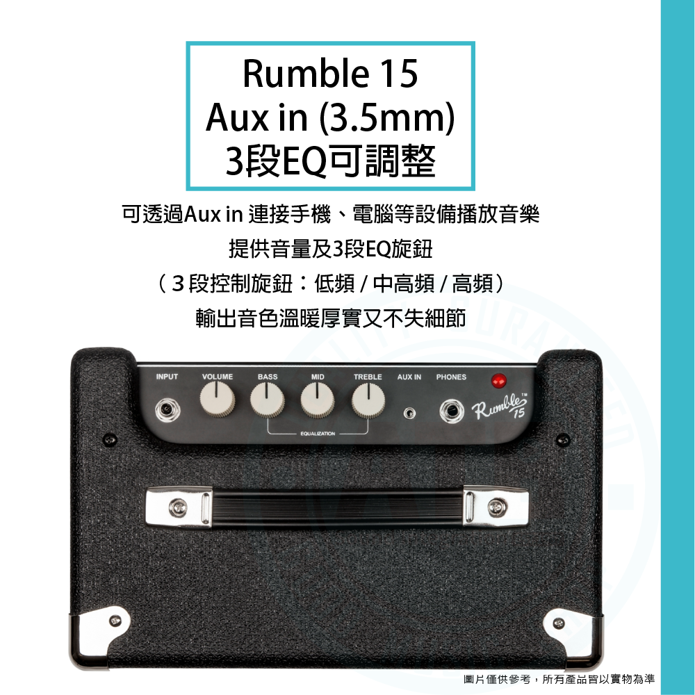 ◆ Rumble15 & 25具3段EQ旋鈕,Aux in播放音樂