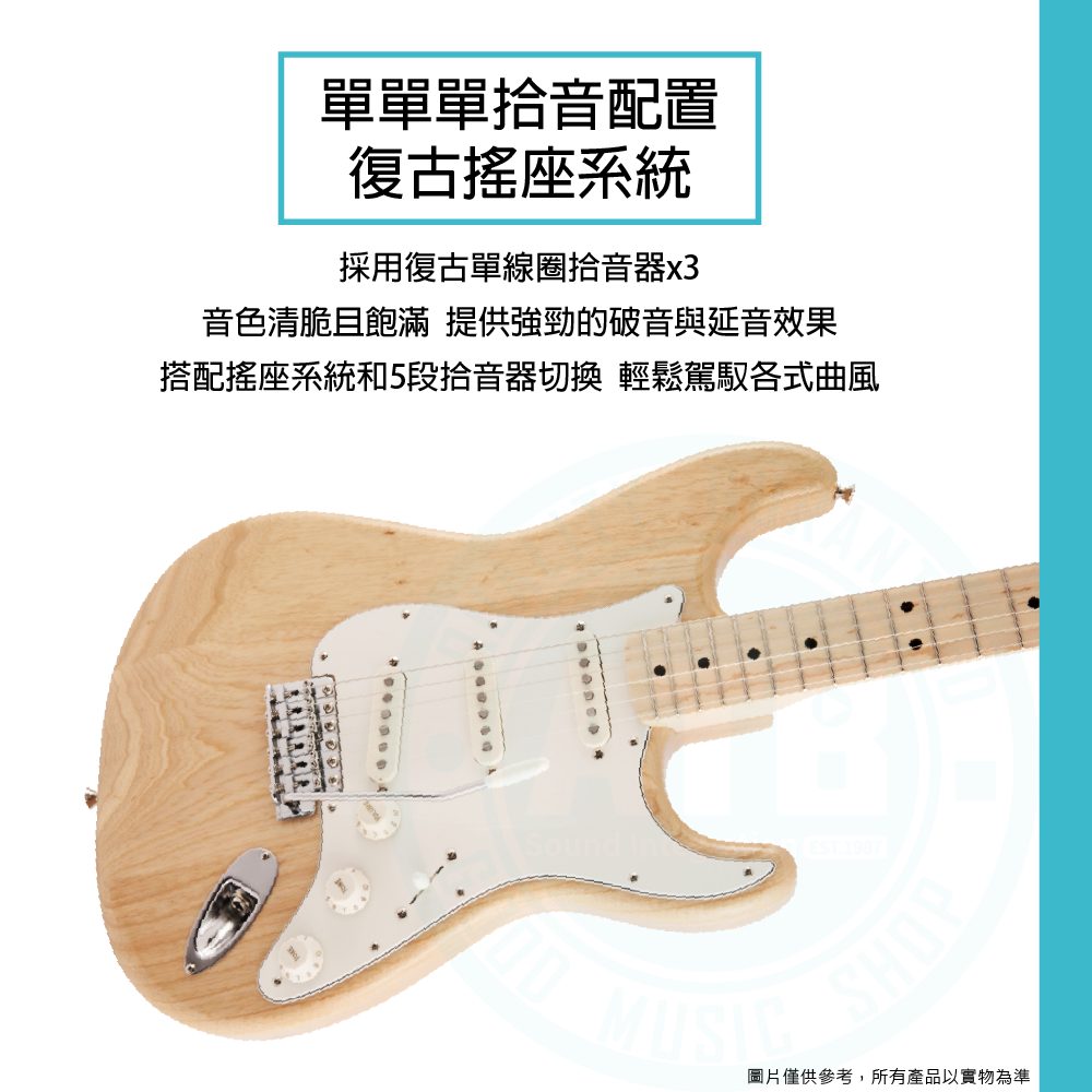 ◆ 單單單拾音配置、復古搖座系統,提供強勁破音與延音