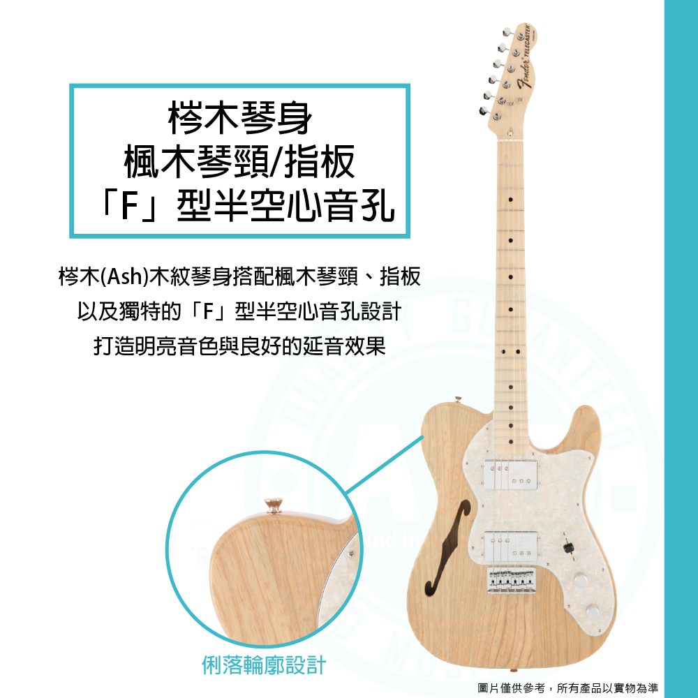 ◆ 採梣木琴身、楓木琴頸/指板,打造明亮音色
