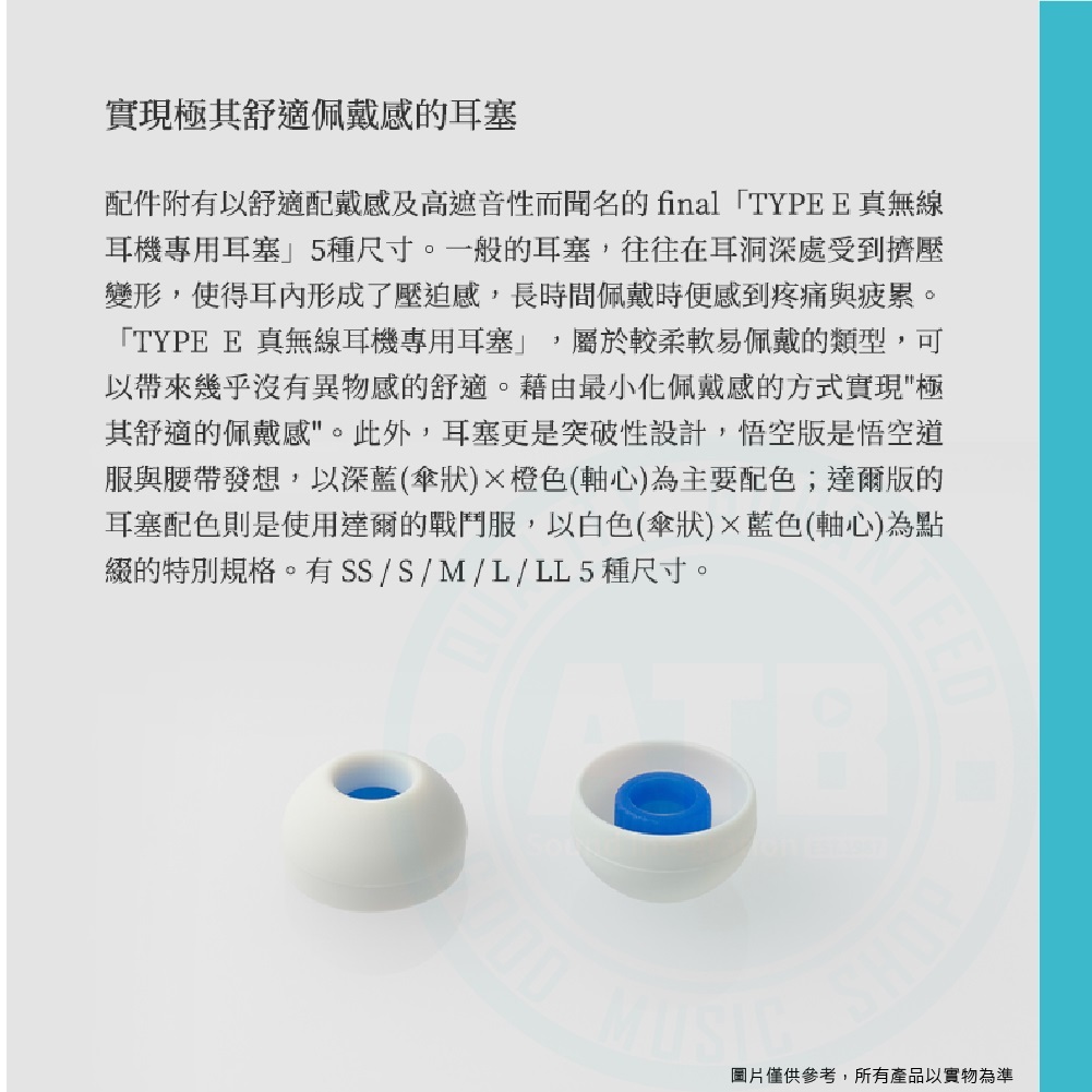 ◆配件提供 5種尺寸,final 的“TYPE E 真無線耳機專用”耳塞