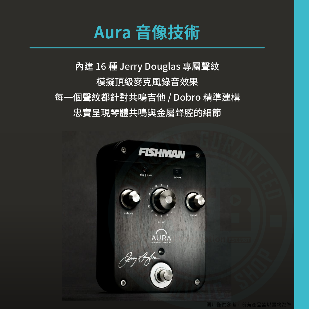◆ 內建 16 種 Jerry Douglas 為共鳴吉他量身錄製的 Aura 聲音樣本