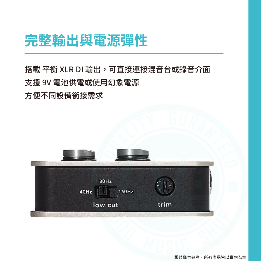 ◆ XLR DI 輸出支援舞台與錄音,提供專業平衡輸出,無需額外 DI box