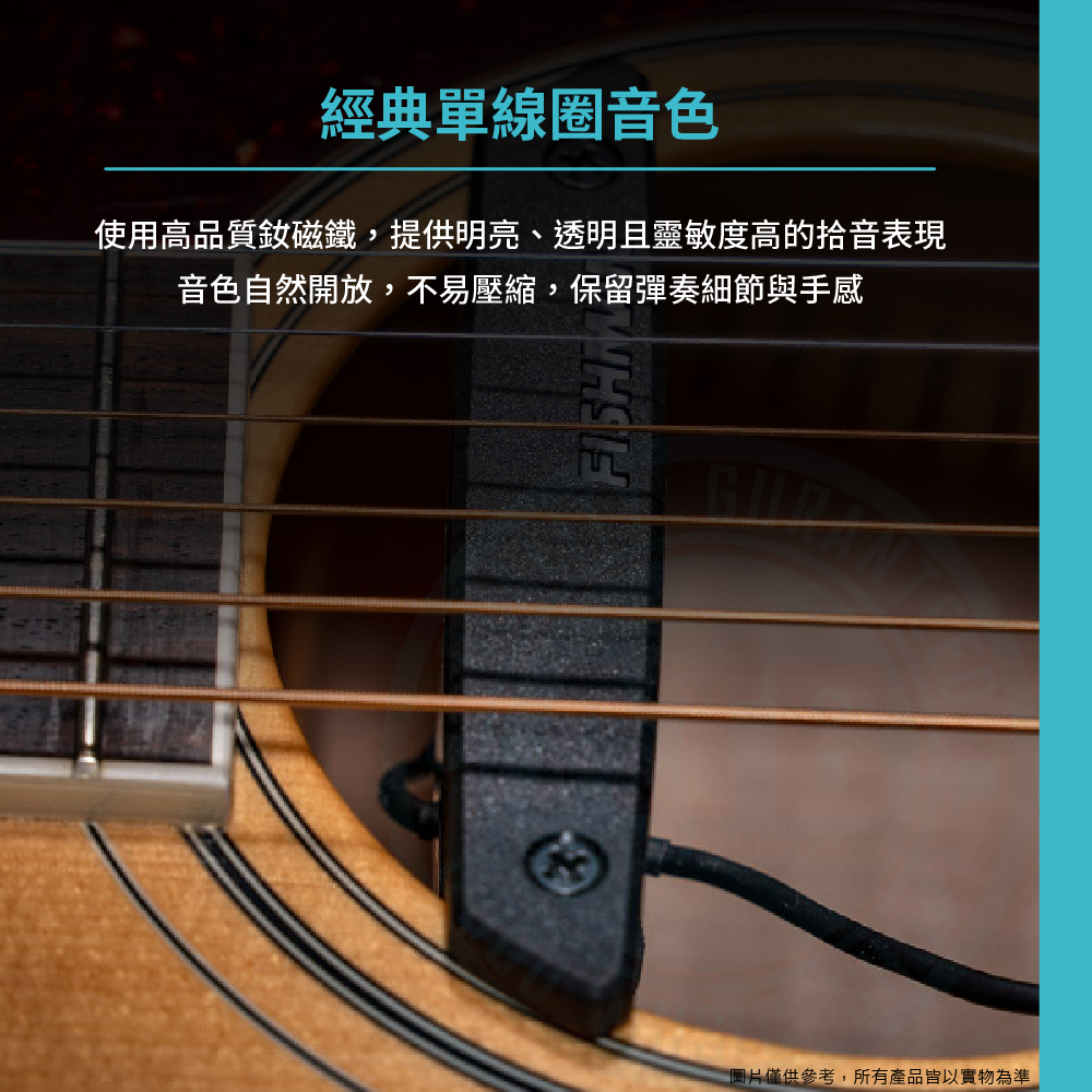 ◆ 單線圈設計呈現清透開放的原聲吉他音色