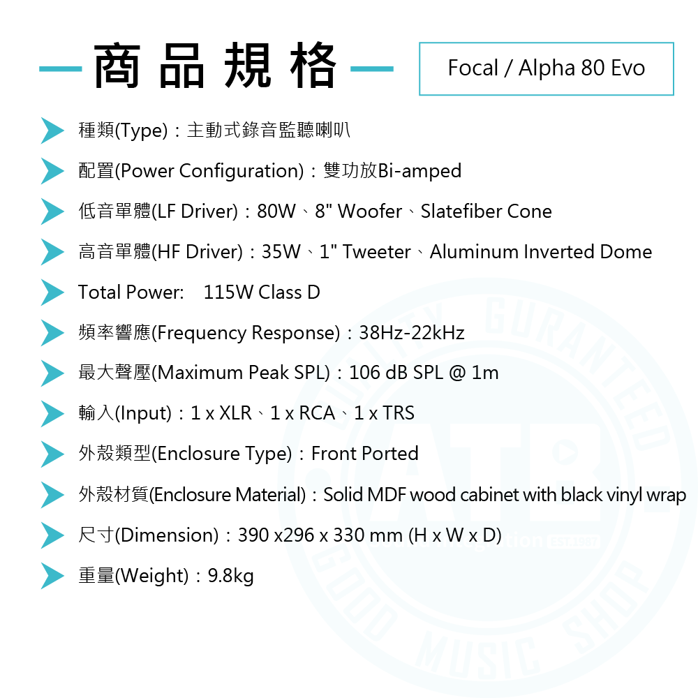 ◆ 法國手工Slatefiber 8吋低音單體,聲音響應平坦準確
