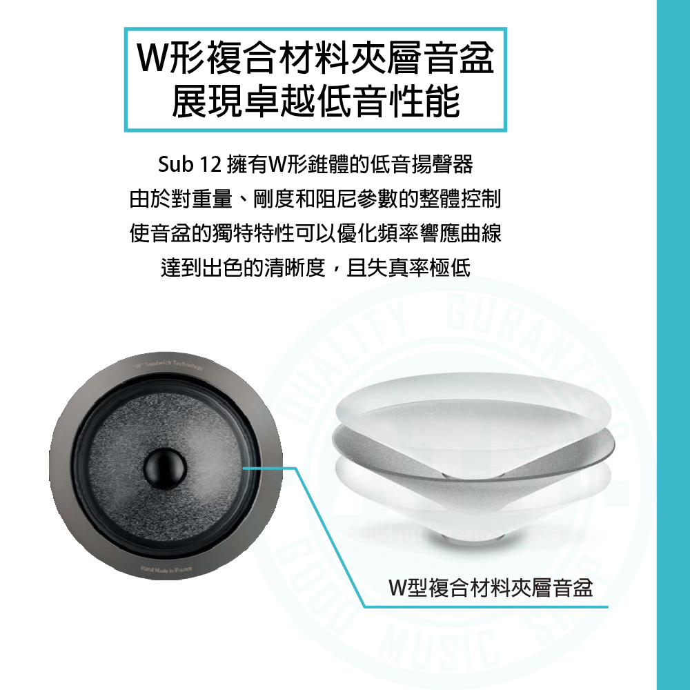 ◆ 複合材料夾層音盆,展現卓越低音性能