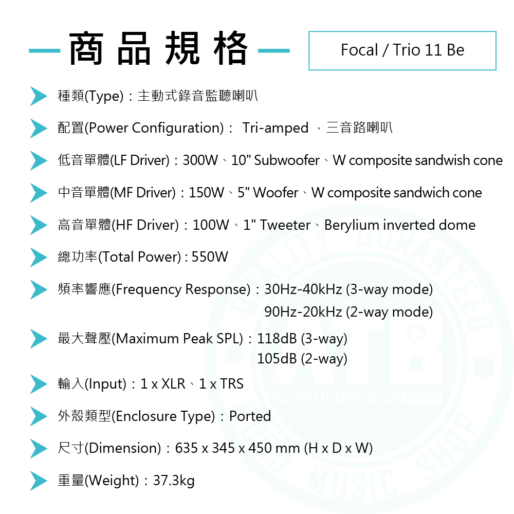 ◆ 總功率550W,三音路喇叭