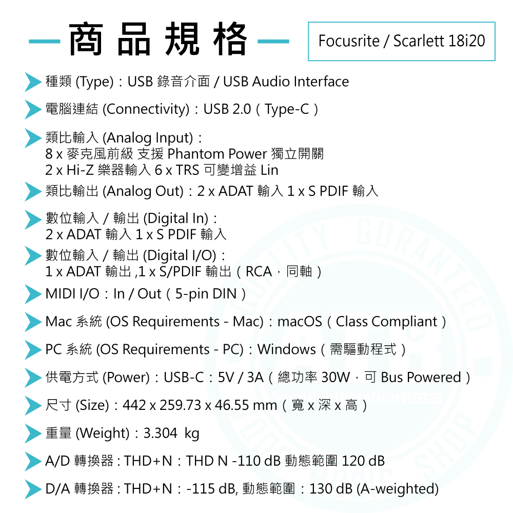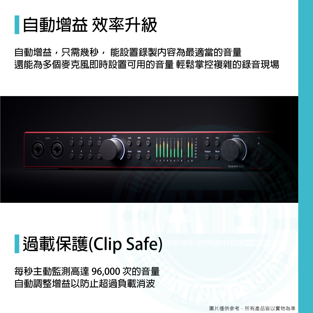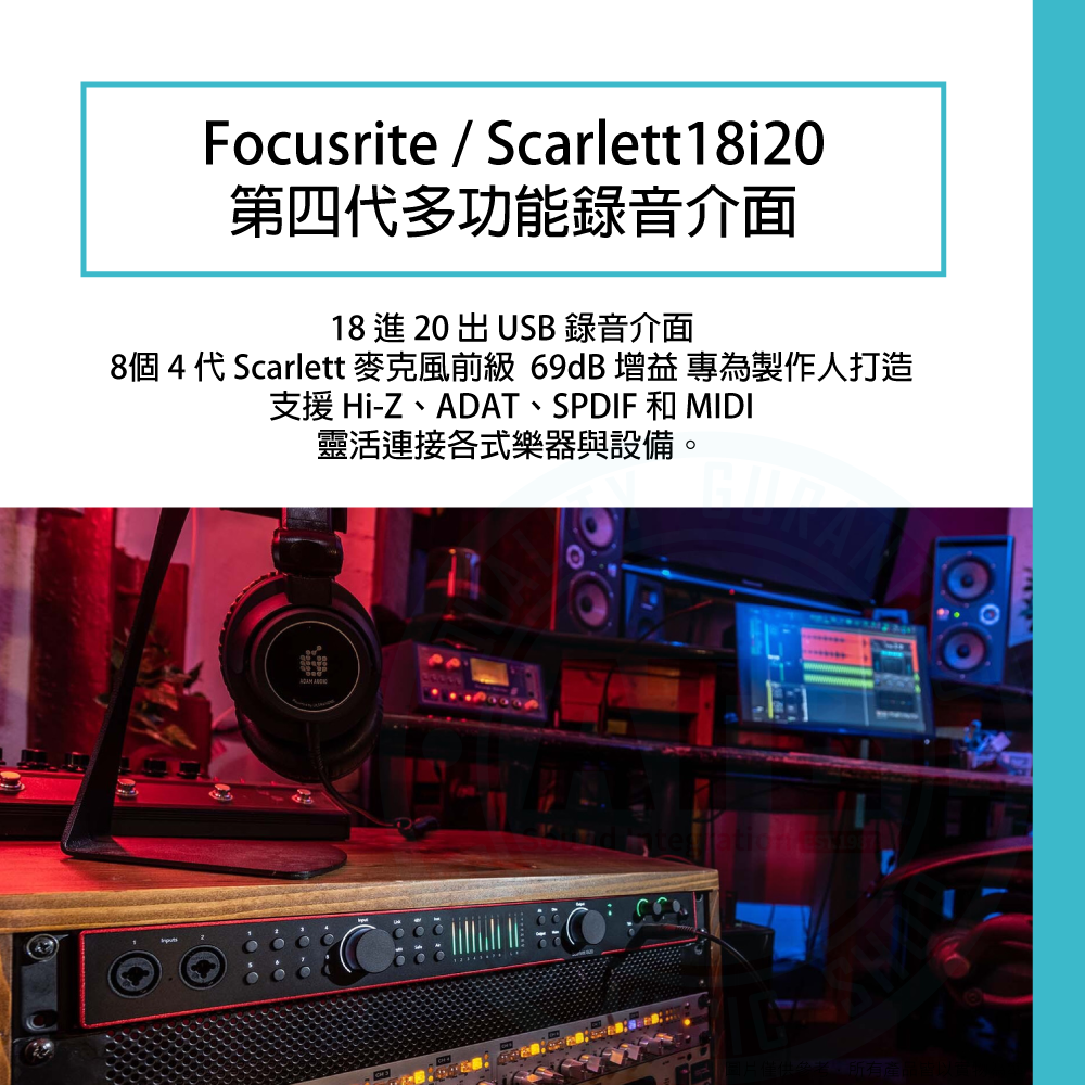 ◆18 進 20 出 USB 錄音介面 8個 4 代 Scarlett 麥克風前級