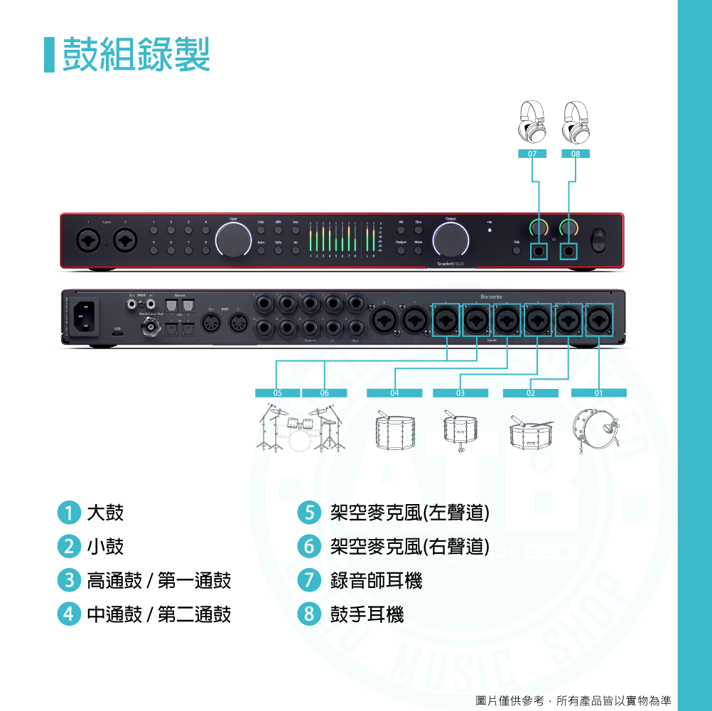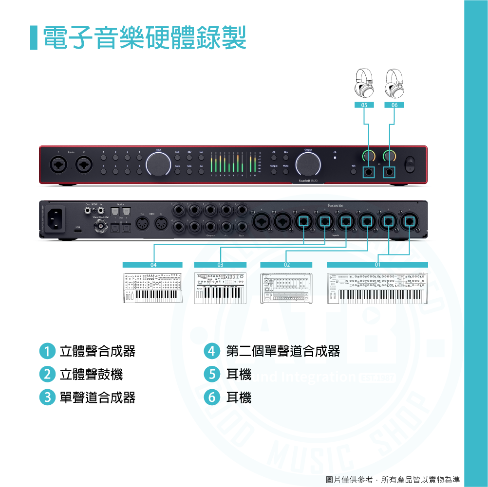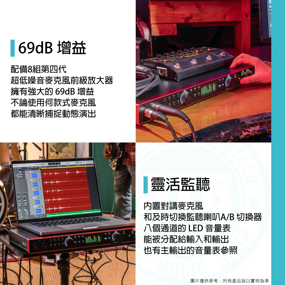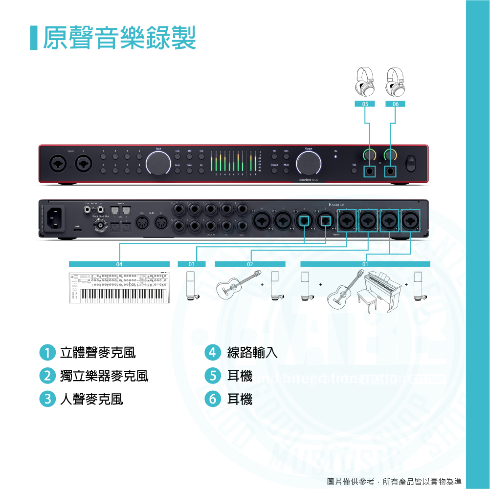 ◆18 進 20 出 USB 錄音介面 8個 4 代 Scarlett 麥克風前級
