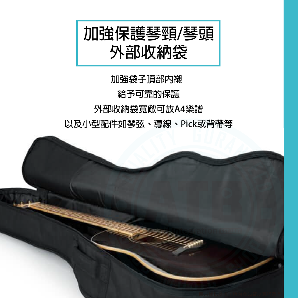 ◆ 外層寬敞收納袋,可放A4樂譜、琴弦、導線、背袋等物品