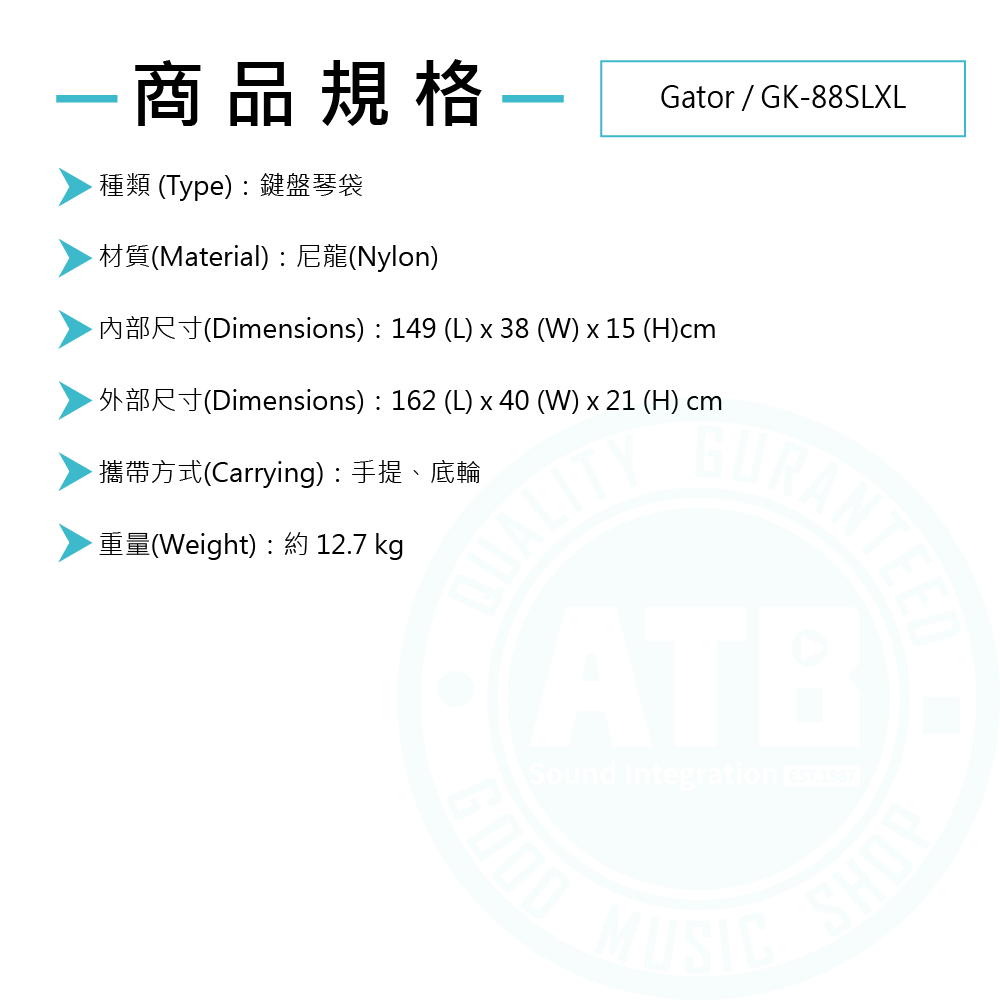◆ 窄身鍵盤琴袋,適用琴身細長的88鍵鍵盤