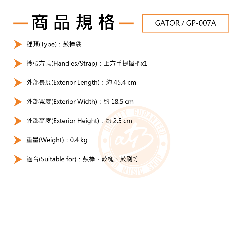 ◆ 0.4 kg輕量尼龍鼓棒袋,可收納鼓棒、鼓槌、鼓刷等工具