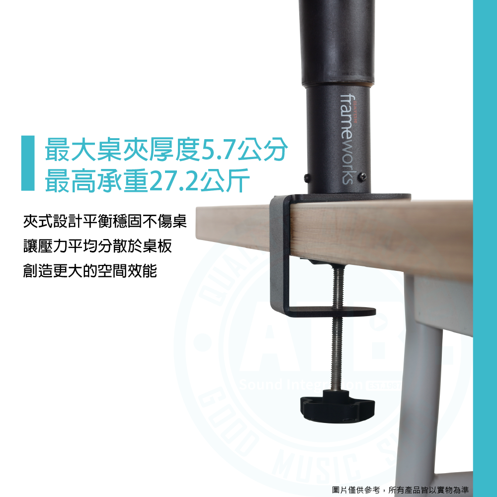 ◆ 最大桌夾厚度5.7公分,最高承重27.2公斤