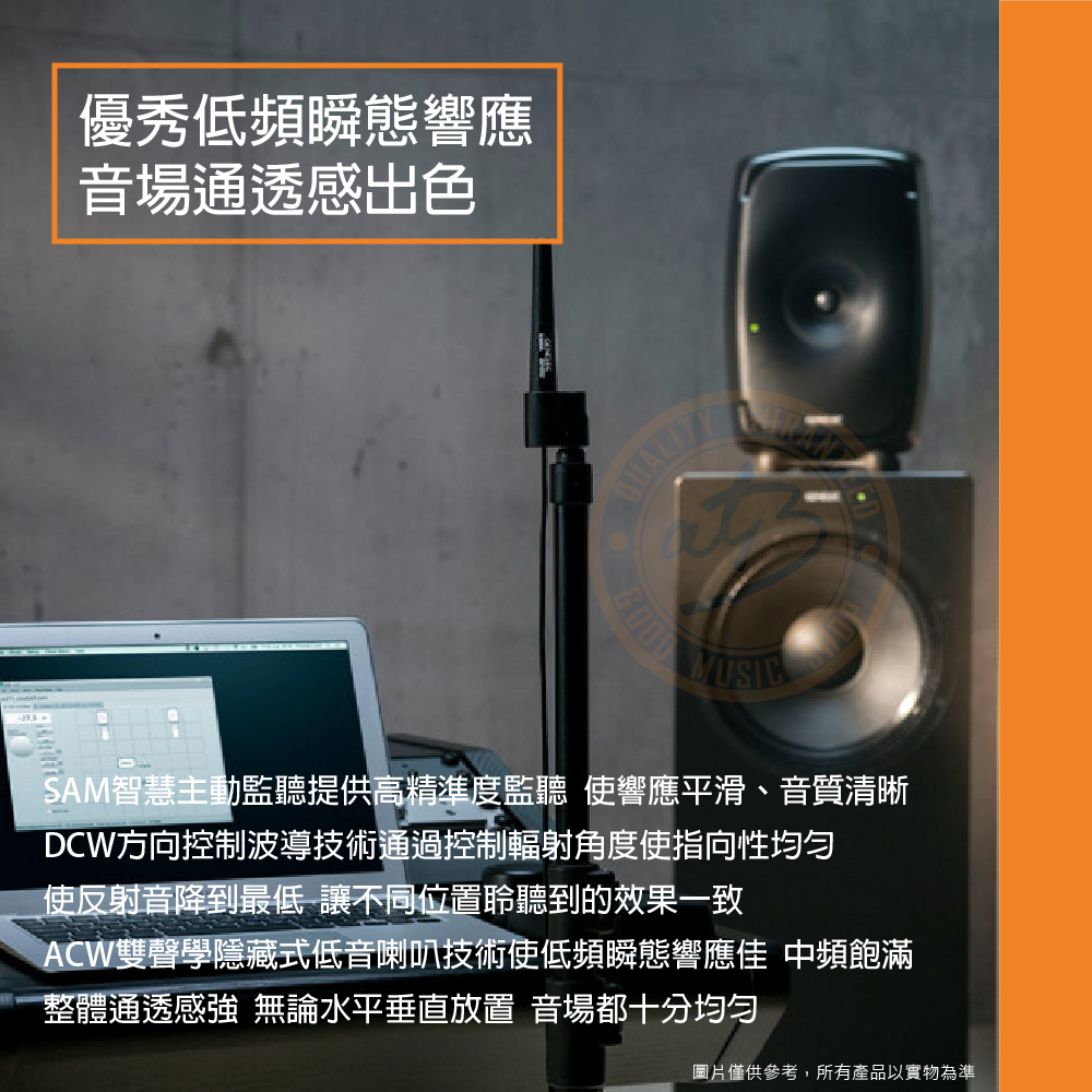 ◆ 最近監聽距離可達40cm,玲聽響應平滑的無反射音色